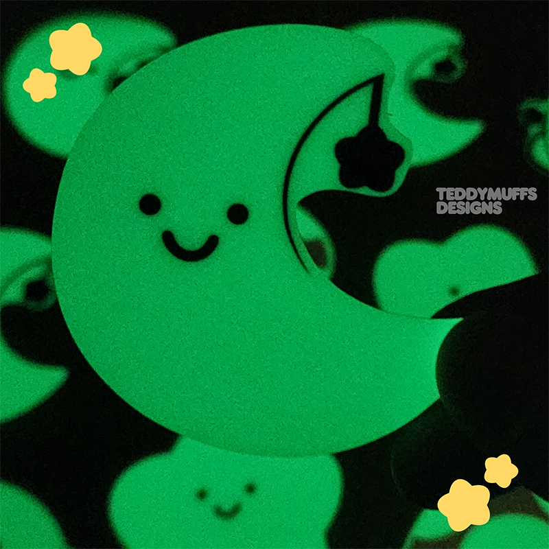Glow in the dark moon sticker with a simple, clean shape.