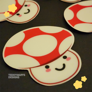 Glow in the dark mushroom sticker with a simple, clean shape.
