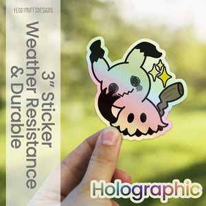 This holographic sticker features a shiny version of Mimikyu, catching the light with a subtle rainbow effect while keeping that familiar, slightly awkward charm intact. Cute, understated, and a little bit special, like a shiny find you weren’t expecting.