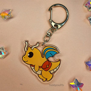 This clear acrylic keychain features Dragonite with bold, vibrant artwork printed on both sides. Inspired by Pokémon, this charm is finished with a smooth resin dome and sturdy hardware, making it a perfect addition to bags, backpacks, or keys.