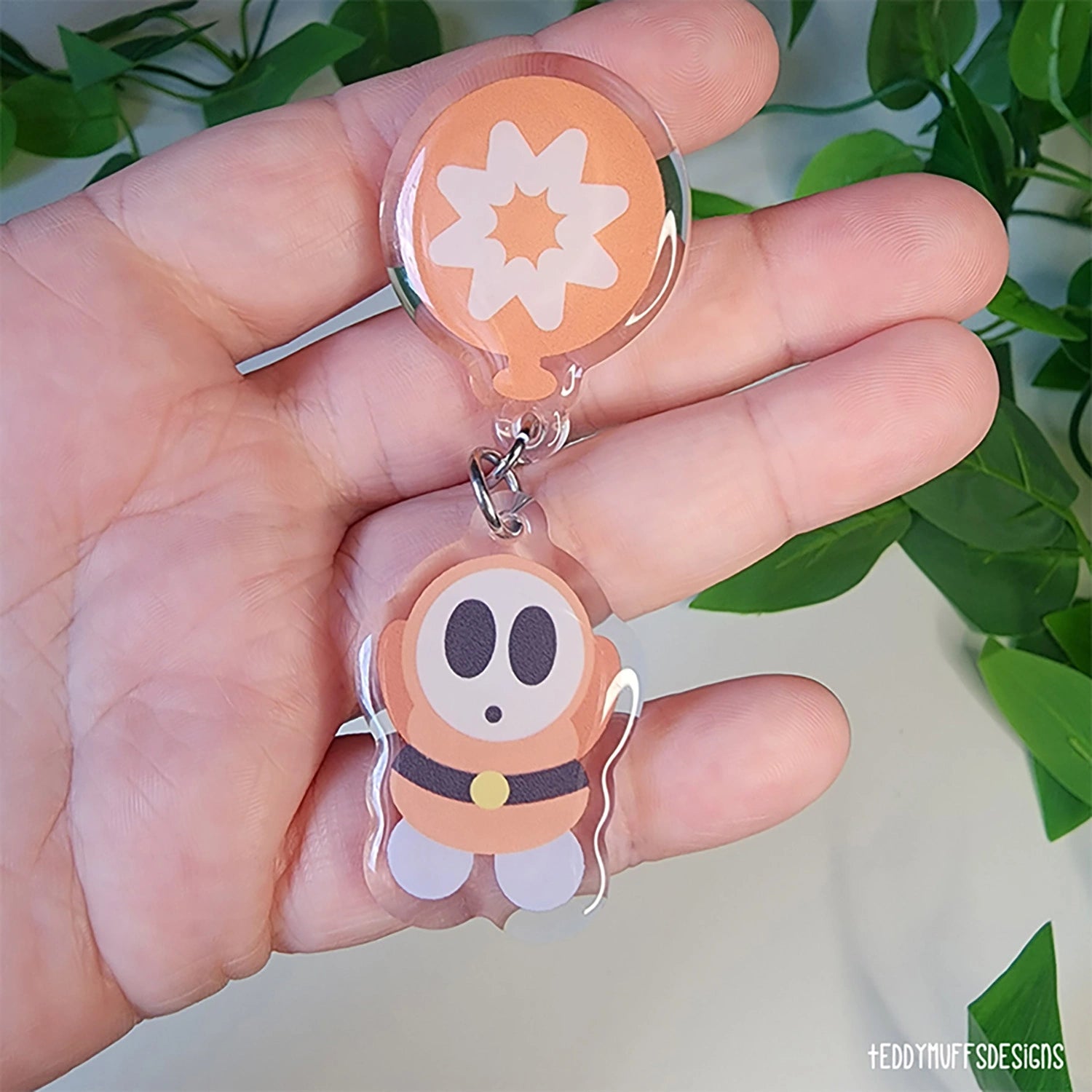 Add some classic Mario charm to your accessories with this Shy Guy acrylic pin! Featuring a cute chibi Shy Guy design dangling from a balloon, this piece is perfect for fans of iconic Mario characters and playful collectibles.