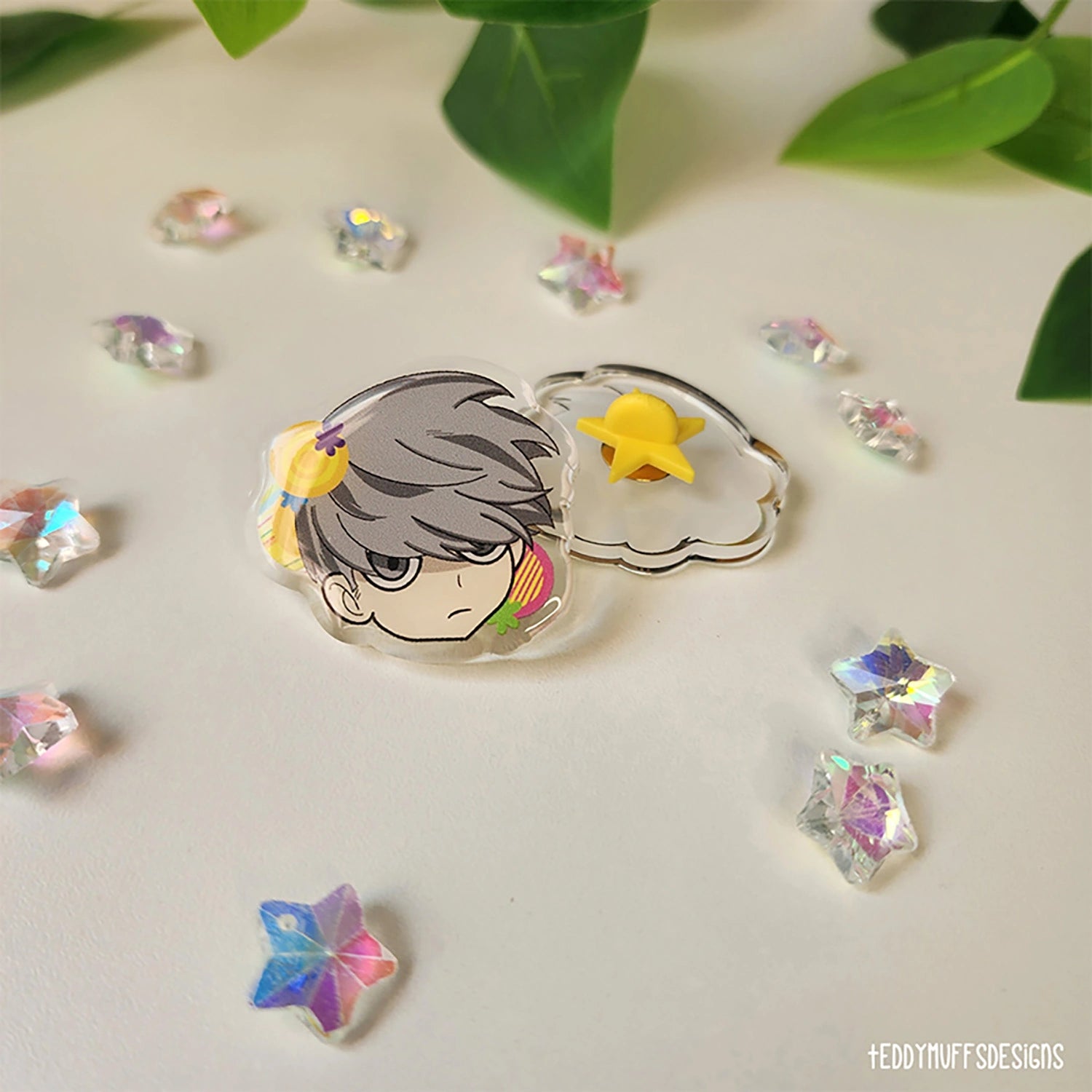 Calm, cool, and quietly iconic, this Yu acrylic pin is inspired by the protagonist of Persona 4. With his laid-back confidence and unmistakable style, this design captures that main-character energy fans instantly recognize, all in a cute chibi form that fits perfectly into any collection.